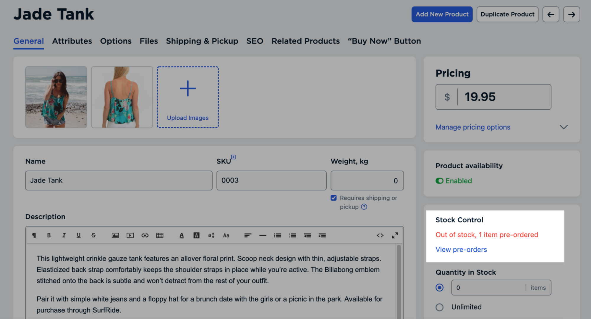 That’s it! Now when this product variation becomes out of stock in your store, your customers will be able to pre-order it. Other variations will remain available for purchase if they are in stock.